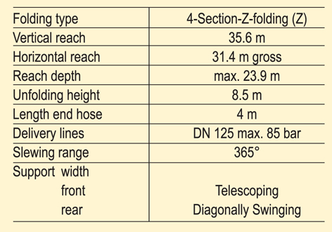 With its Z-fold boom, the M 36-4 combines an optimum reach on a 3-axle chassis with added features and versatility, all at a gross weight of under 25t. The great flexibility of the Z-fold system and the narrow cross-section of the arm assembly significantly improve the M 36-4’s manoeuvrability. It enables jobs to be completed as fast and as simply as possible. Overcoming obstacles on construction sites is no big deal, because the M 36-4 is even able to reach places that would usually require larger machines or boom extensions.